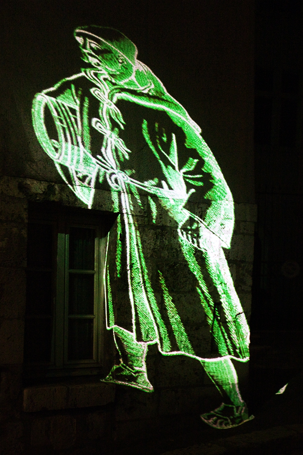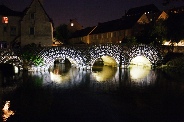 Chaque bâtiment utilisé pour la mise en scène de Chartres en Lumières est indiqué sur un parcours, que l’on suit dès la tombée de la nuit (de 21h à 1h du matin) grâce aux petites loupiottes bleues sur le bord des rues de la ville. Je n’ai pas forcément commencé par le n°1 et en même cela m’a permis d’éviter la foule…