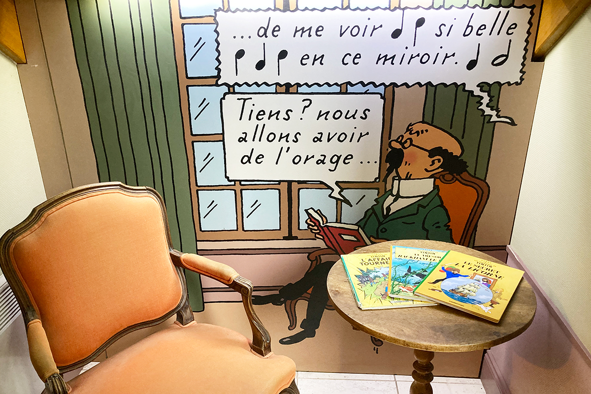 Une exposition interactive « les secrets de Moulinsart » est accessible pour plonger les visiteurs dans l’univers des personnages des aventures de Tintin. C’est magnifique et très imersif, pour les petits et les grands !