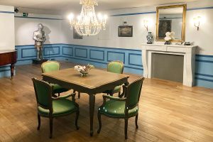 Autrefois dans la salle des Trophées, il était possible de prendre le thé. Depuis l’arrêt des grandes cérémonies… l’Orangerie accueille désormais les visiteurs pour déjeuner et/ou y prendre un thé et une gourmandise.