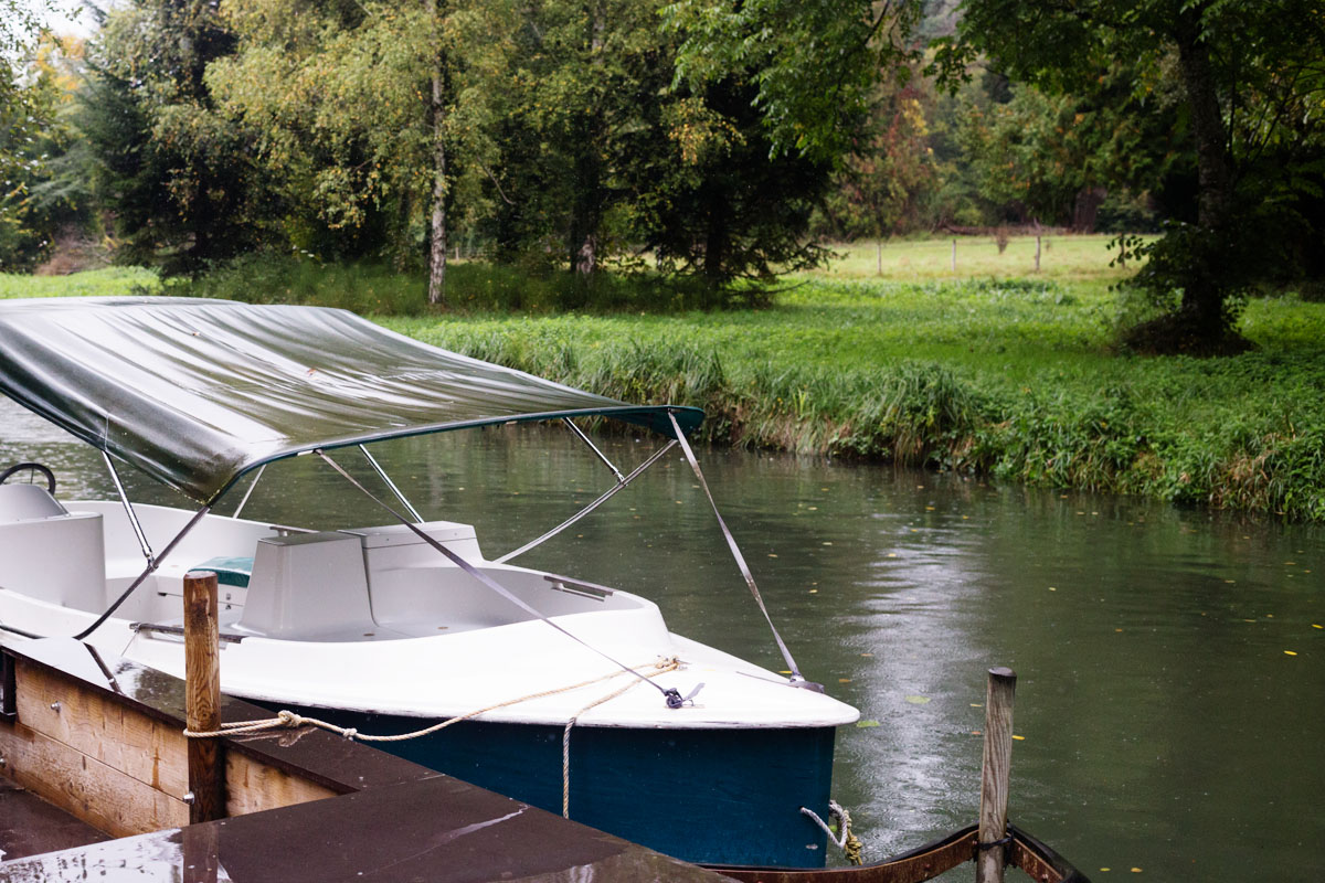 J’ai ensuite embarqué à bord d’un bateau électrique pour naviguer sur le canal datant du 18ème siècle (avec ses 1,8m de profondeur pour 1,5 de large) plus un bout de la rivière Conon… Puis, la pluie s’est invitée au RDV mais cela nous a quand même permis d’apercevoir des chevreuils, des cols vert, … et de voir la beauté de cette nature.