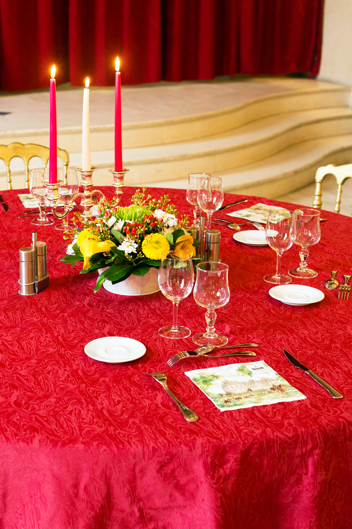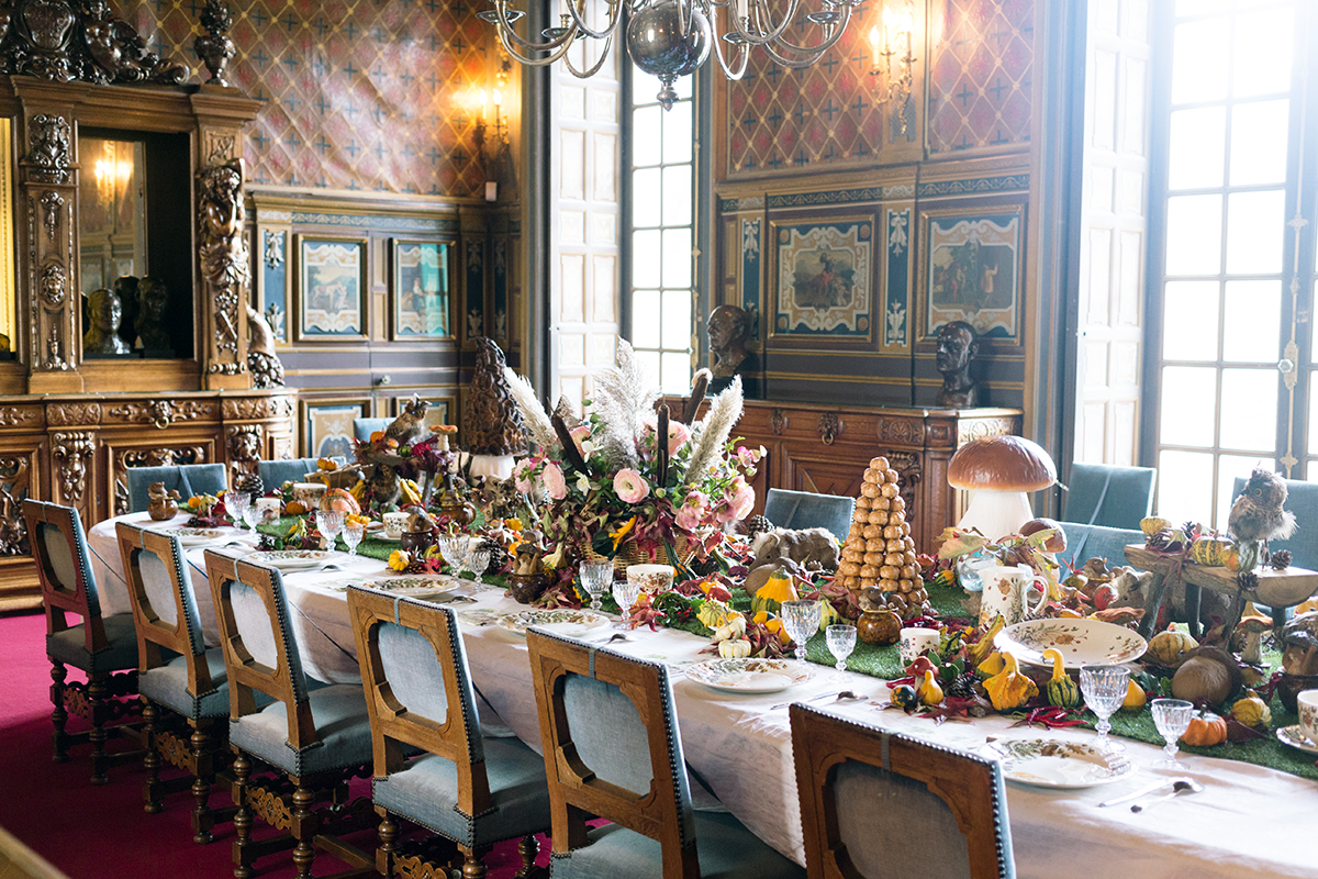 Début de la visite au RDC avec la salle à manger, où la Marquise adore évènementialiser la table selon les saisons et cette table automnale était divine.