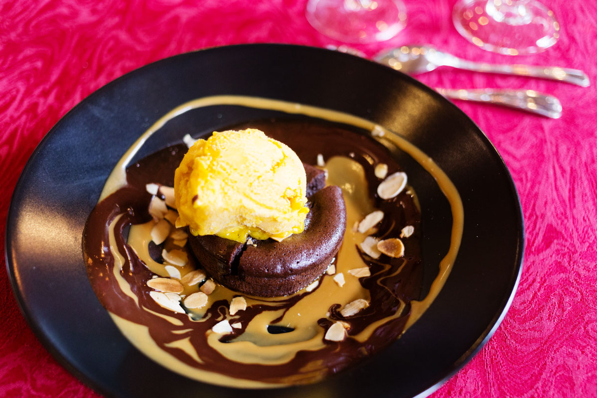J’ai mangé un risotto au poulet et sa salade, vinaigrette exotique et un moelleux chocolat en dessert accompagné sa glace maison à la mangue. Un délice… avec un service parfait et très attentionné.