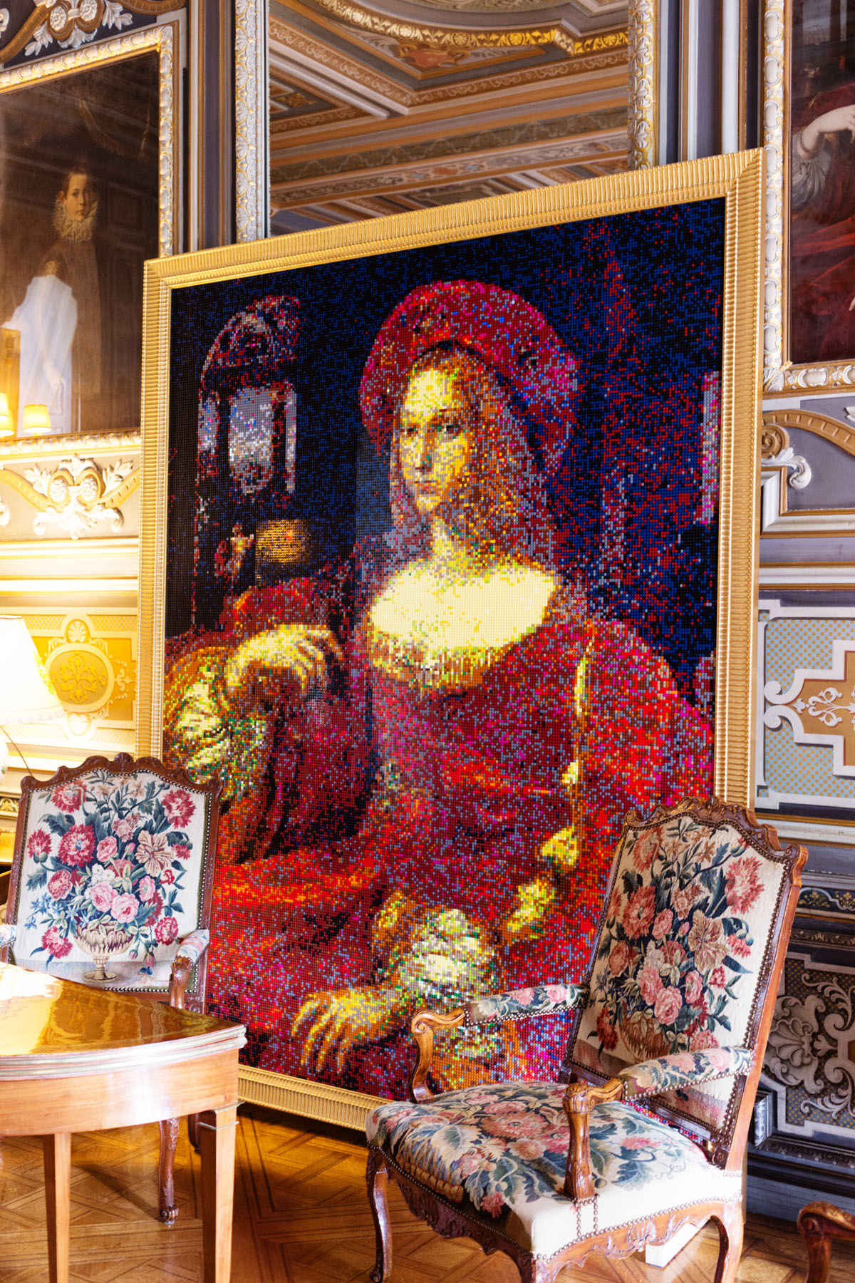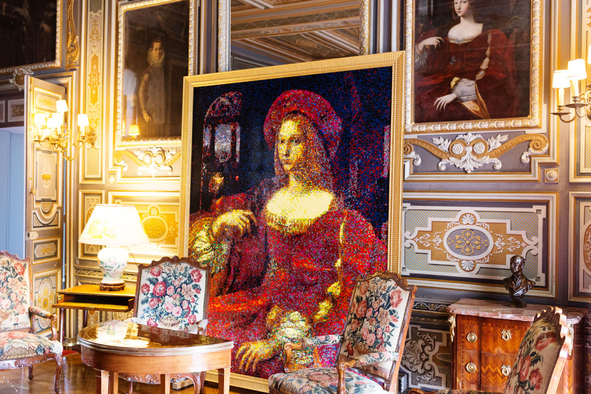 Le tableau de Jeanne d’Aragon en Lego® qui est une réplique du vrai tableau des ateliers de Raphaël qui se trouve dans le Grand Salon du château.