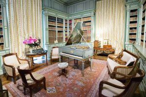 Nous sommes ensuite montés à l’étage (via l’escalier et sa « marche cassée » – cf Tintin) pour visiter les chambres, le salon de musique, …