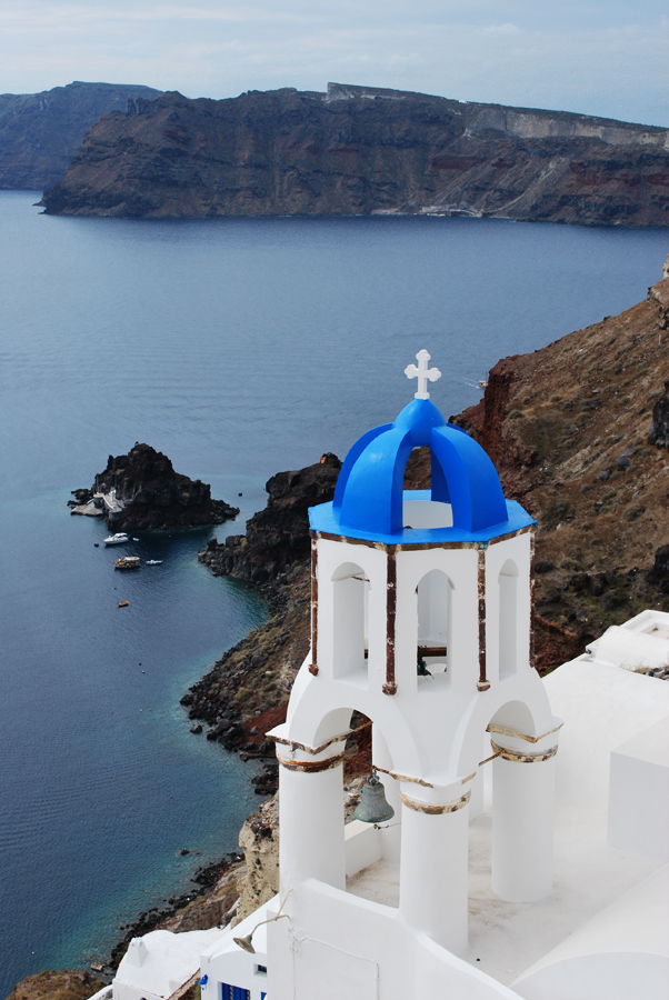 Tous les villages sont construits au sommet d’une falaise de 300 mètres qui n’est autre que la paroi du cratère d’un volcan. D’ailleurs, suite à de nombreuses éruptions volcaniques, la partie centrale de Santorin a disparu sous la mer.