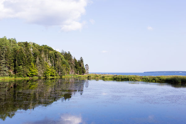 La journée touchait à sa fin et nous n’avions pas envie de partir… Mais nous devions trouver un hébergement pour la nuit. Et voulions être au bord de l’eau plus que dans une ville. Nous avons alors repris la voiture et fait finalement que quelques kilomètres avant de tomber, d’abord, sur un superbe point de vue sur la baie de Lunenburg avec une très belle lumière sur la ville – mes photos ne rendent pas bien hommage au spectacle que j’ai eu, mais c’était un super souvenir !