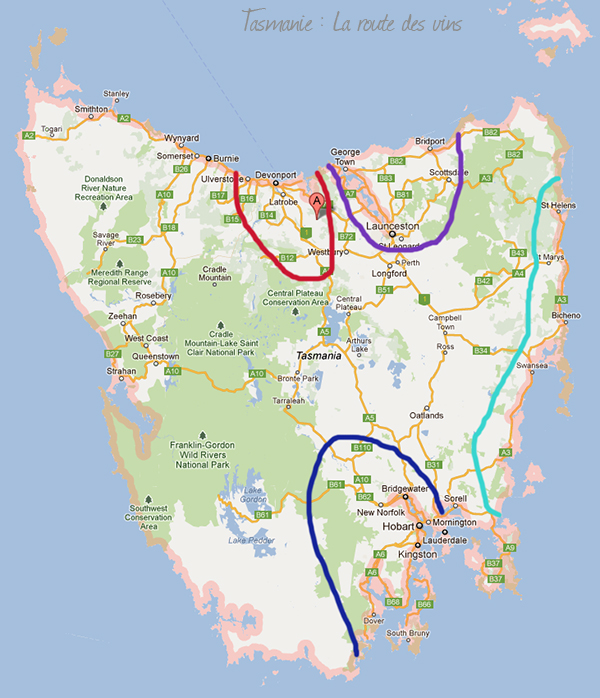 - en violet, la Tamar Valley – la plus ancienne et la plus connue,