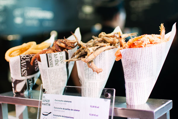 Vieux marché traditionnel, tout proche de la Plaza Mayor, transformé en place to be gastronomique aux allures plutôt moderne, le marché de San Miguel permet de déguster des plats typiques espagnols pour moins d’1€ en version miniature. On y trouve de TOUT : charcuterie, fromage, fruits, légumes, fruits de mer, chocolats, glaces, jus de fruits, sangria, vins, paëlla, café… Tout est frais et appétissant !