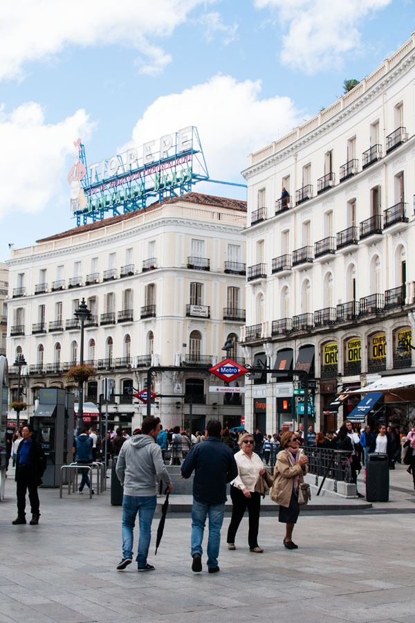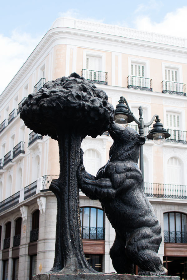 La Puerta del Sol est le centre de tout – le point de départ de la visite de la ville. C’est d’ailleurs d’ici que toutes les rues principales démarrent. Sur la place, j’ai trouvé la célèbre statue de l’ours et l’arbousier par le sculpteur Antonio Navarro Santafe, qui s’est inspiré des armoiries de la ville de Madrid.