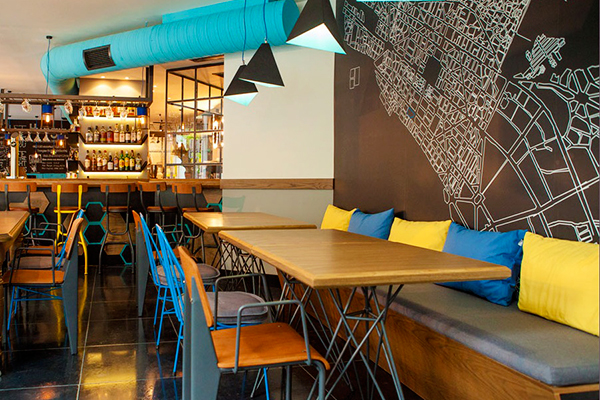 Le bar-restaurant BE fait parti de l’hôtel The Excelsior et propose une cuisine dite ‘alternative’ dans un style de restau ‘american diner’. Le design est plutôt industriel et très coloré – ce qui m’a tout de suite plu en passant devant. L’esthétique du lieu est inspirée de l’Urban Soul Project, complétée par l’influence musicale du jazz classique et Indie de The Pultp, Velvet Underground, the Belle and Sebastian et Fiona apple.