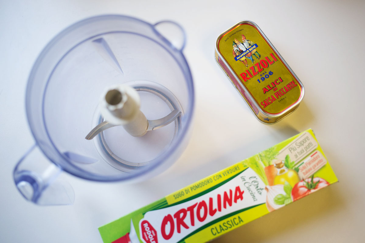 Conservation du Parmigiano Reggiano AOP– A part, mixer la sauce Ortolina avec les anchois à la sauce piquante + un filet d’huile d’olive (ajouter un brin d’eau si besoin pour la rendre plus onctueuse)