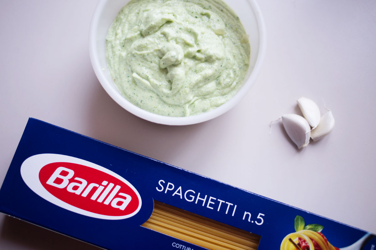 Spaghettis à la crème de courgettes, sauce piquante aux anchois– C’est prêt, régalez-vous !