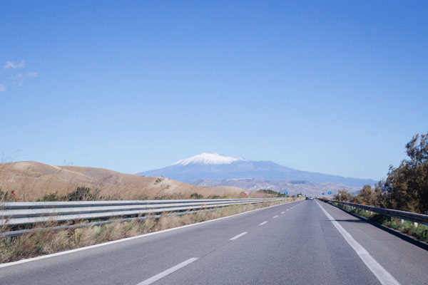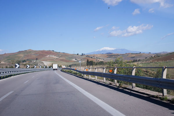 Et surprise, je me rends compte que depuis la route je vois le Mont Etna – que je n’aurais malheureusement pas le temps d’approcher de plus près :