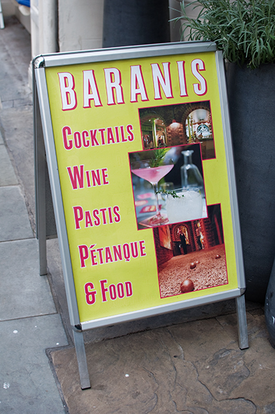 La cuisine du restaurant Le Ciganlon est à l’étage principal, quand vous arrivez, et le bar, le Baranis se trouve en sous-sol, où il est donc possible de jouer à la pétanque en sirotant son Ricard… Un vrai coin de provence à Londres !