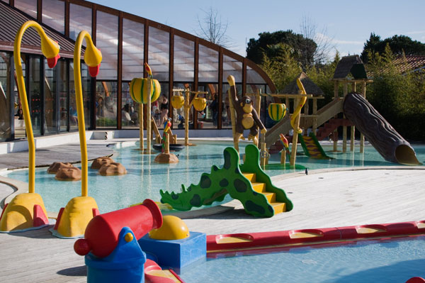 une piscine extérieure, une piscine à jeux pour enfants extérieure,