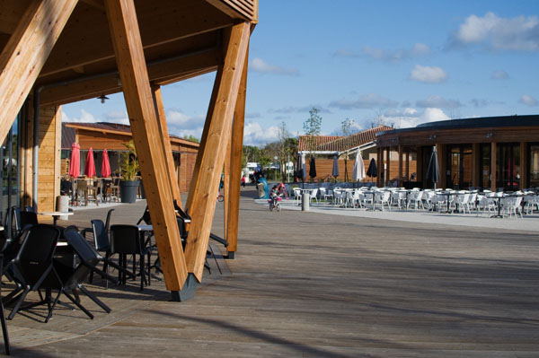 avec à disposition un supermarché, une boutique de produits locaux, un lavomatic, un service de location de voiture à pédales, un restaurant, un bar avec terrasse en plein air, une salle de concert formidable,