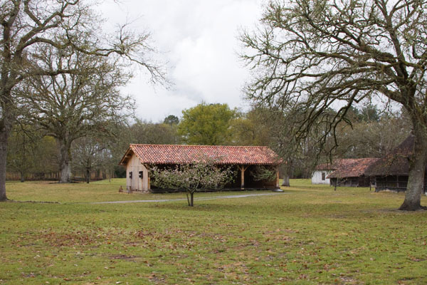 Une fois dans le quartier de Marquèze, vous remarquerez qu’il est séparé du bourg, comme l’étaient les quartiers de l’ancienne lande. Accessible au public par un train aux voitures de 1906 et 1911, classées Monuments Historiques, il réunit sur 20 hectares les éléments les plus caractéristiques de la vie paysanne de la fin du 19ème siècle. J’ai découvert le cadre de vie et de travail des anciens habitants dans un grand espace boisé de chênes au milieu d’une forêt de pins.