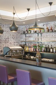 Avant de se retrouver pour dîner (séjour entre amies), j’ai visité ma chambre, pris le temps d’une douche pour effacer les premières traces de fatigue de la journée et retrouver mes copines blogueuses (aussi) dans le bar de l’Hôtel pour une coupe de champagne. Les chaleureuses couleurs de l’espace bar invite à la détente.