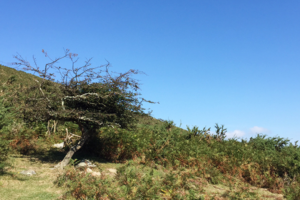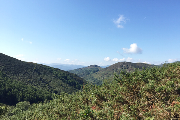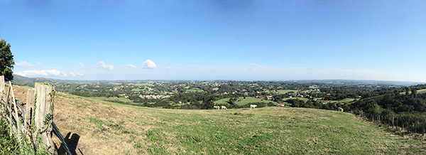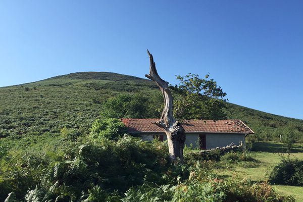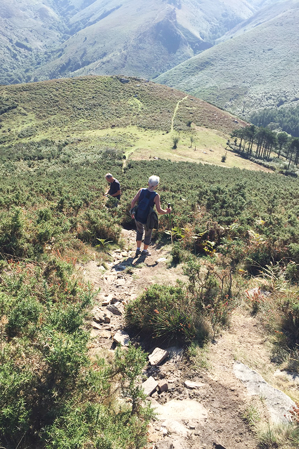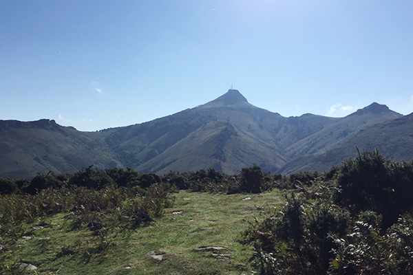 De là, il fallait continuer pour descendre de l’autre côté de la montagne jusqu’à arriver sur un plateau. Nous étions alors face à la Rhune – montagne bien connue du Pays-Basque. Le paysage devenait complètement différent, en terme de végétation mais aussi de couleur. On est passé du vert à l’orange jusqu’à atteindre la croisée des chemins.