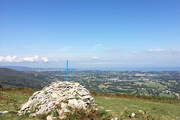 Ensuite, il faut continuer le chemin qui continue devant la chapelle pour arriver au sommet de la dite Montagne de Ciboure (411 mètres d’altitude) où trône une stèle dédiée à la vierge Marie. La tradition veut d’ailleurs que chaque randonneur dépose une pierre à la Vierge lors de son passage.