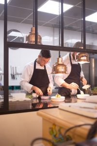 Visité une ville doit faire plaisir à tous les sens… alors j’avais repéré quelques bonnes tables gourmandes, que j’avais pris soin de réserver. Avec climatisation de préférence, car c’et fou en plein mois d’août, la chaleur qui y faisait ! J’avais noté plusieurs adresses : L’Authentik, D’un terroir à l’autre, Une cuillère pour maman, … mais notre envie s’est davantage portée sur le restaurant Aux Tabliers Noirs qui nous paraissait prometteur. Et je confirme que notre expérience a été super intéressante. Le Chef est accueillant et cuisine sous nos yeux avant de proposer ses plats très joliment décorés à partir de produits de saison.