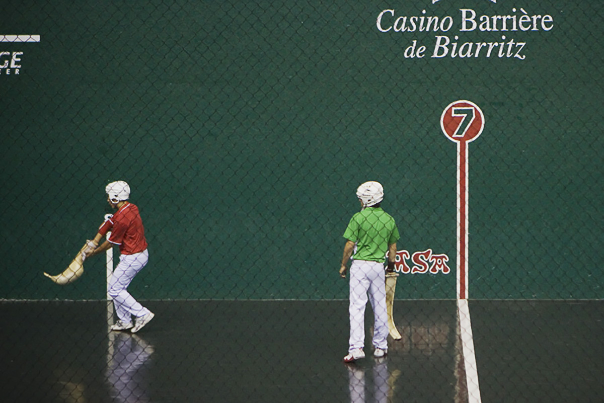 Ce jeu exige un effort total et violent. Il consiste à renvoyer contre le fronton la pelote servie par l’adversaire, en la prenant soit à la volée, soit après un rebond. Aussi dure que la pierre (et je confirme, après mon « baptême basque » qui consiste à être « tapé » par une pelote à l’entrée sur le fronton), la pelote atteint la vitesse de 300km/h, ricochant sur les murs du côté et du fond.