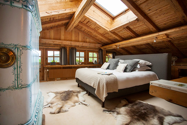 Son chalet tout en bois et pierres, bâti dans la plus pure tradition savoyarde est entre neige et sapins.