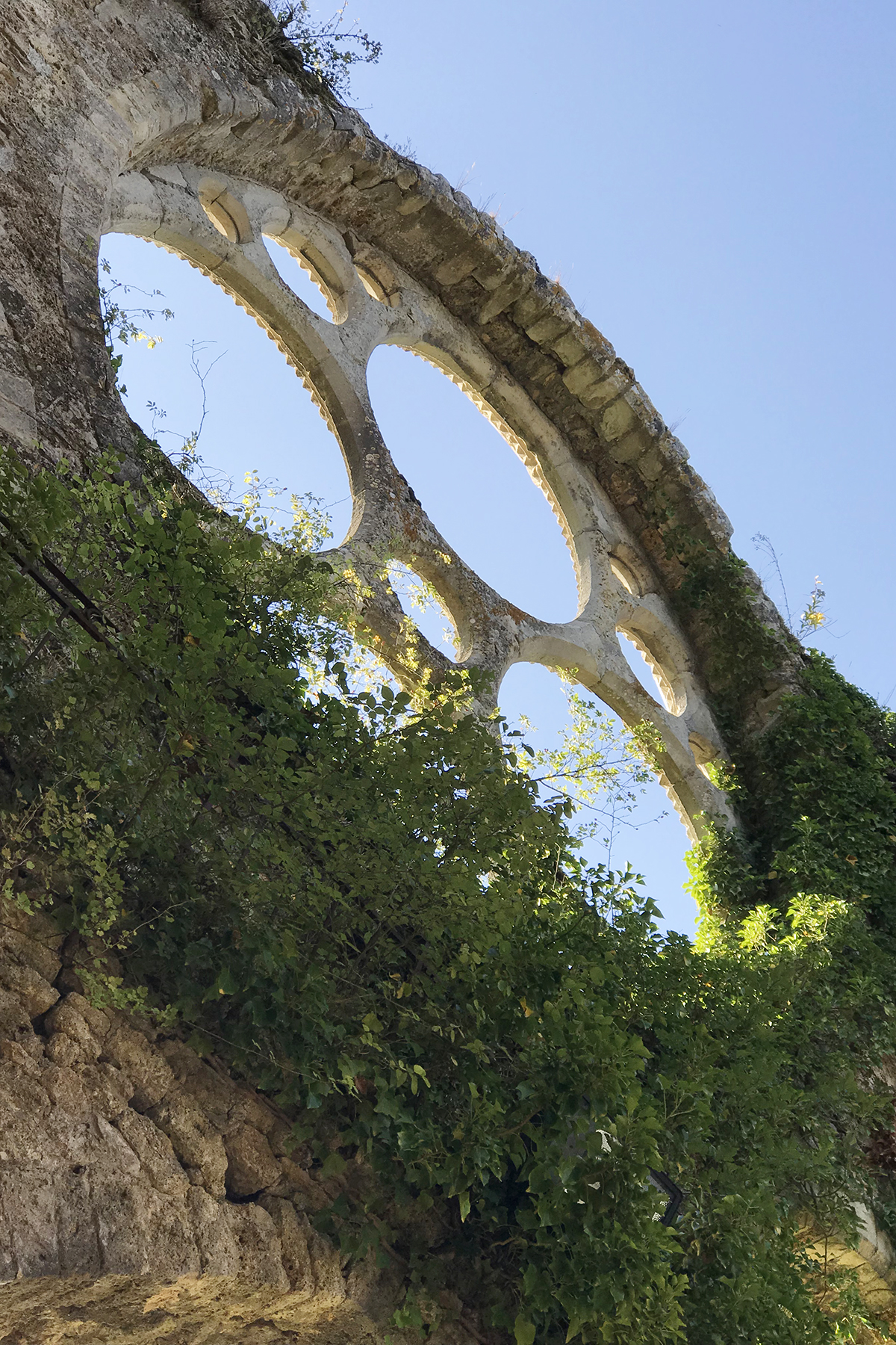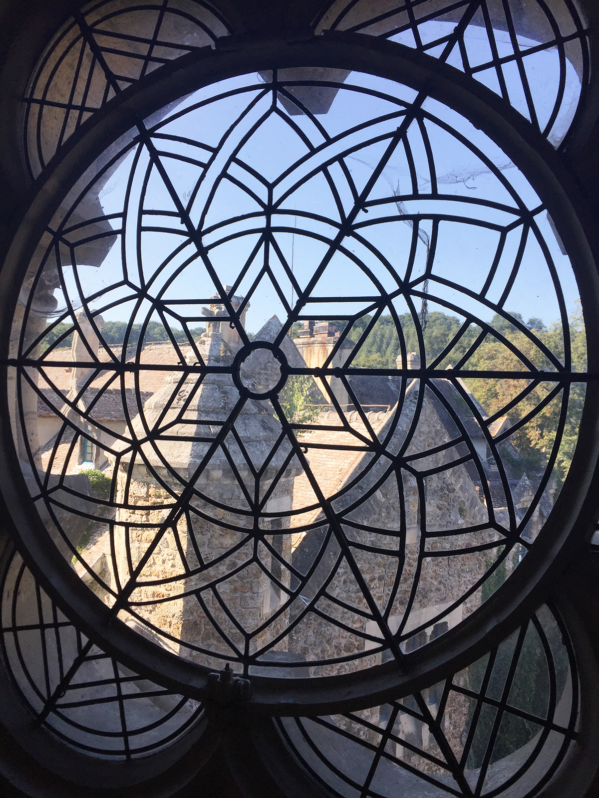 La fenêtre principale de notre chambre était d’ailleurs la jolie rosace que l’on voit sur la photo ci-dessous, avec une très belle vue. La vie de château. Et de l’autre côté, nous donnions sur la terrasse du restaurant.