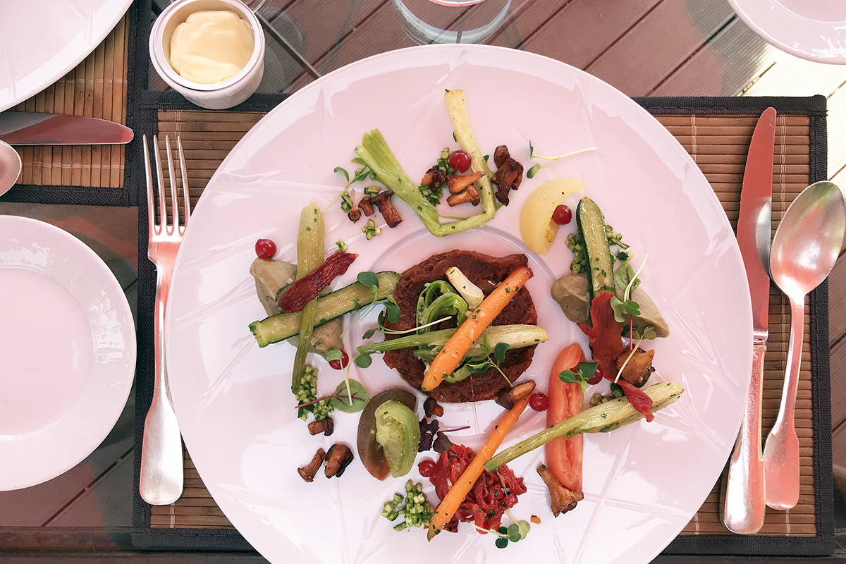 Nous avons continué notre balade sur le domaine, avant de prendre notre déjeuner avec vue, en terrasse :