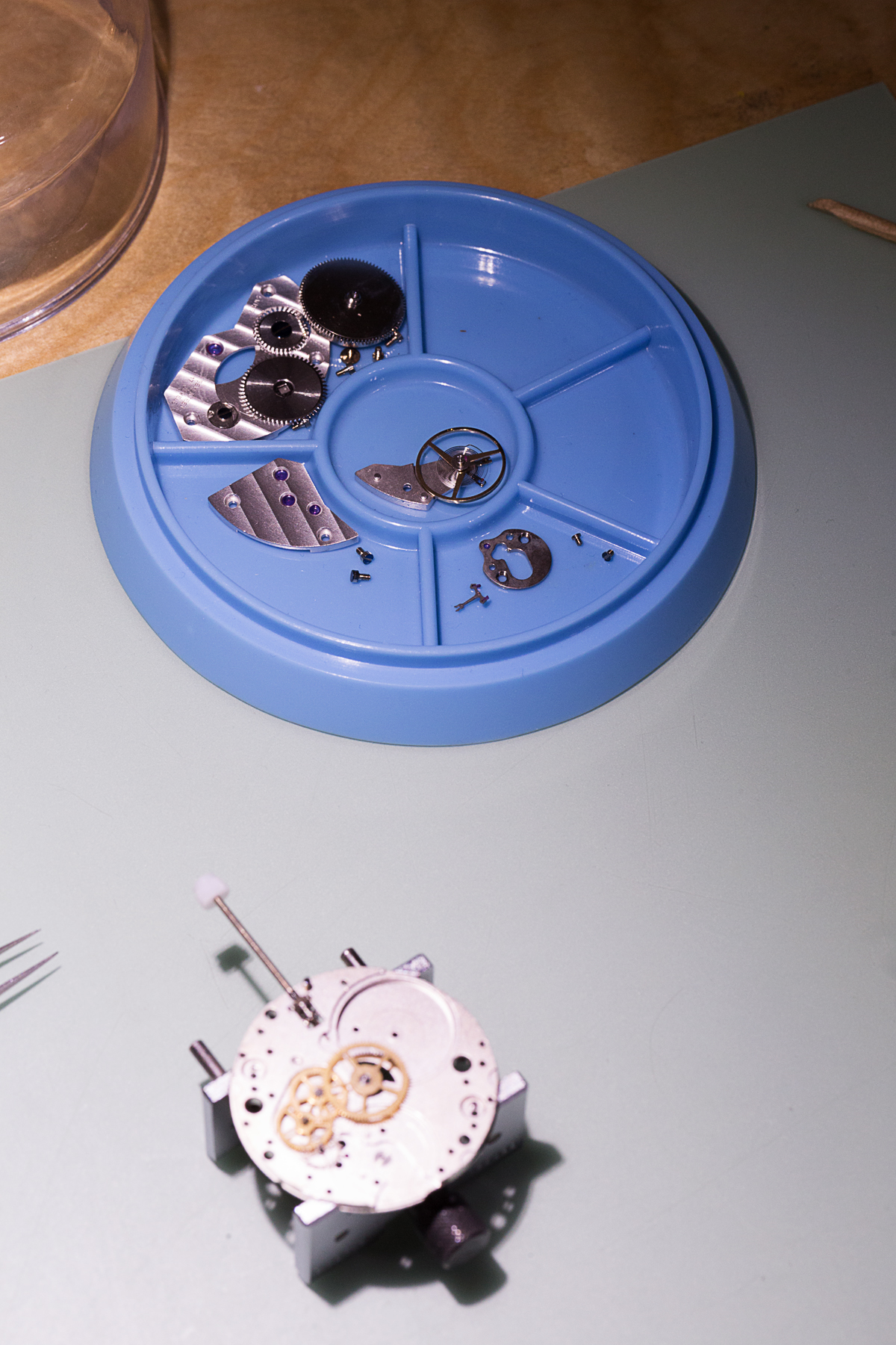 La partie pratique s’est déroulée à partir d’un mouvement mécanique suisse de type ETA 6498 à remontage manuel ayant une valeur autour de 400€. J’étais ultra concentré pour ne rien louper des étapes de démontage/remontage… de peur d’en laisser des plumes. Les explications sont tellement claires, qu’il est impossible de se tromper, en plus du fait d’être en comité restreint qui ajoute une super disponibilité des animateurs. C’est quasi un cours particulier.
