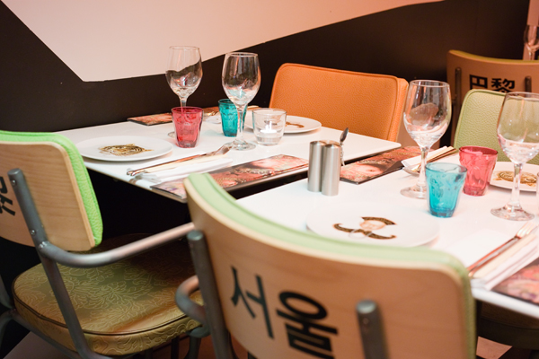 J’ai aimé les tables hautes même si je n’ai pas eu la chance d’être placée à cet endroit, d’autant qu’elles sont animées de plusieurs écrans de chaînes d’infos asiatiques… Bonne idée, mais peut-être un peu perturbant en mangeant. A moins que l’on soit seul ^^