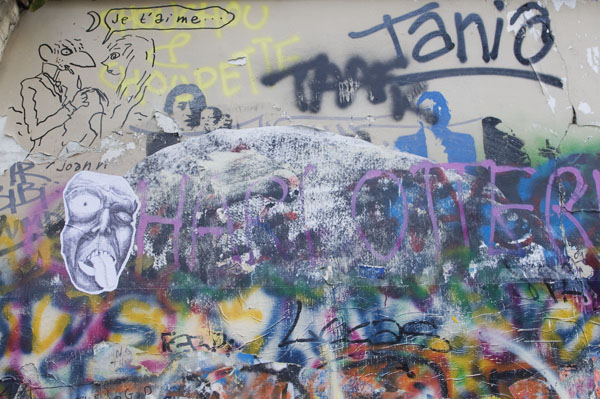 J’avoue que le mur ressemble plus à un grand gribouillage… mais l’esprit est là : des fans laissent leurs messages et des artistes s’expriment autour de pochoirs à son effigie. Un bel endroit…