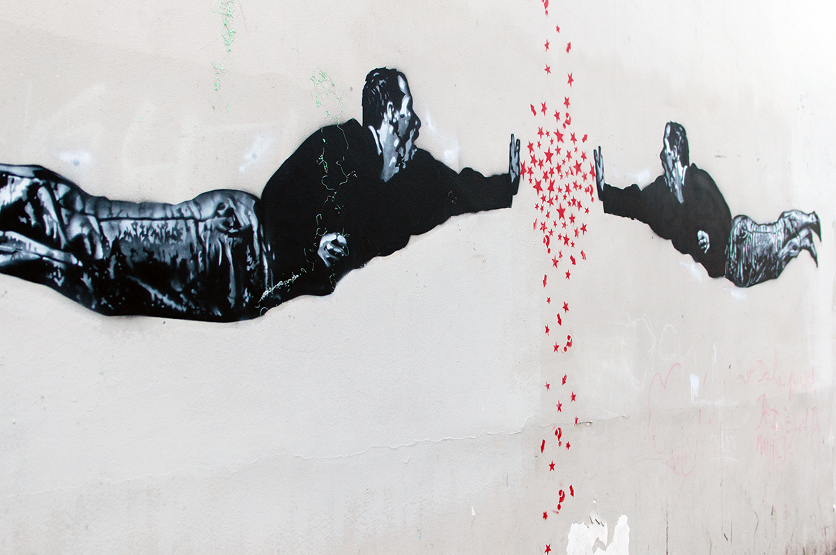 En vous promenant, n’hésitez pas à lever les yeux au ciel (pour Invader et Monsieur Chat notamment) et à vous retourner sur votre passage car des œuvres sont souvent peintes / collées dans des recoins qui interpellent le passant et font sourire.