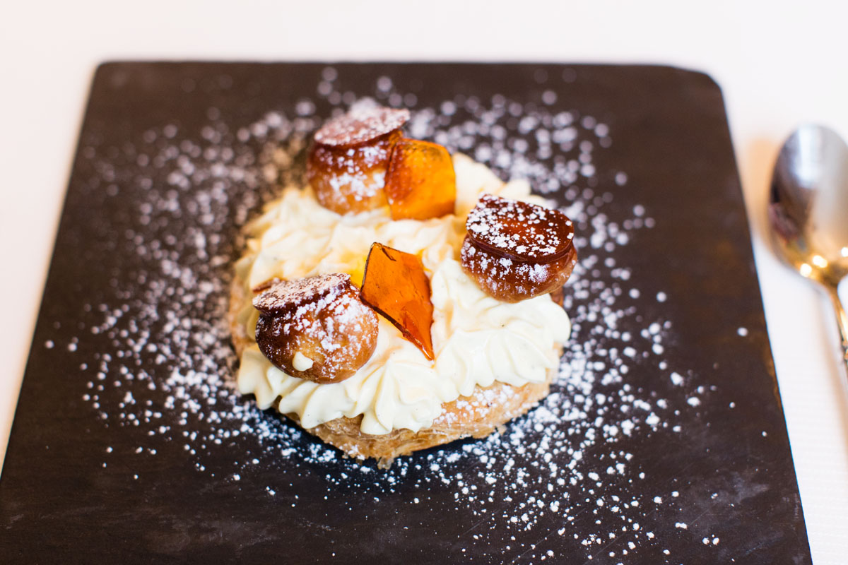 Le Céladon Paris - Onglet de boeufEn dessert, il a triché puisqu’il a choisi une option à la carte – le (gourmand) Saint Honoré du Céladon