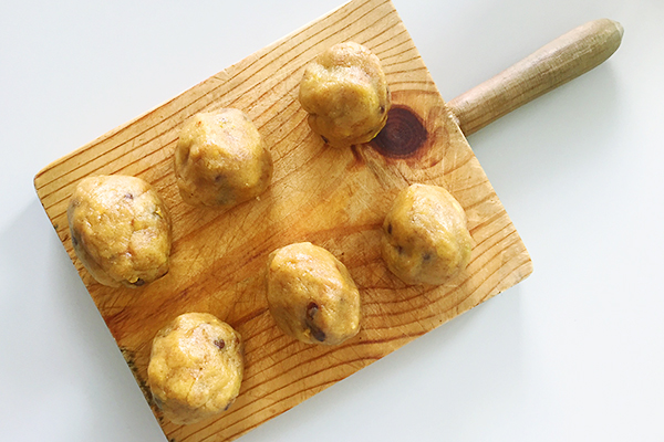 Formez de petites boules de pâte d’environ 4 cm de diamètre rapidement et sans trop les travailler