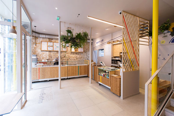 Le concept est poussé encore plus loin avec une déco fraîche et dynamique, qui donne le smile dès l’entrée… puis on est transporté directement vers le Japon sans escale ! Pour les bento, même façon de composer soi-même son plateau avec 6 portions : 3 Vitalité + 1 Énergie + 1 Construction + 1 Plaisir. Le choix des portions pourra varier d’un restaurant à l’autre…