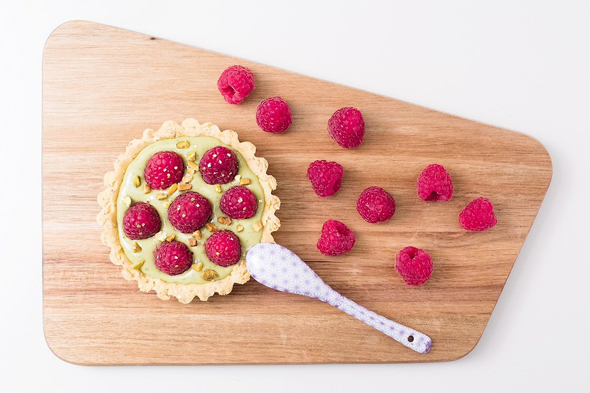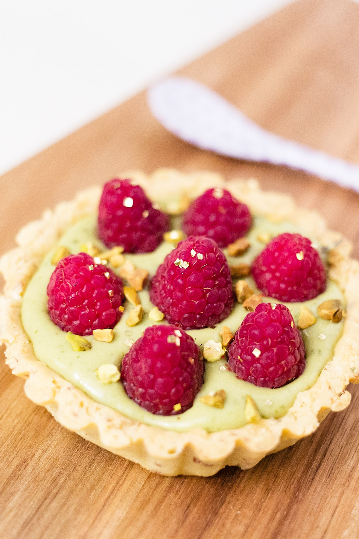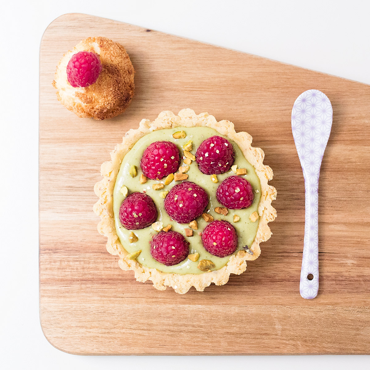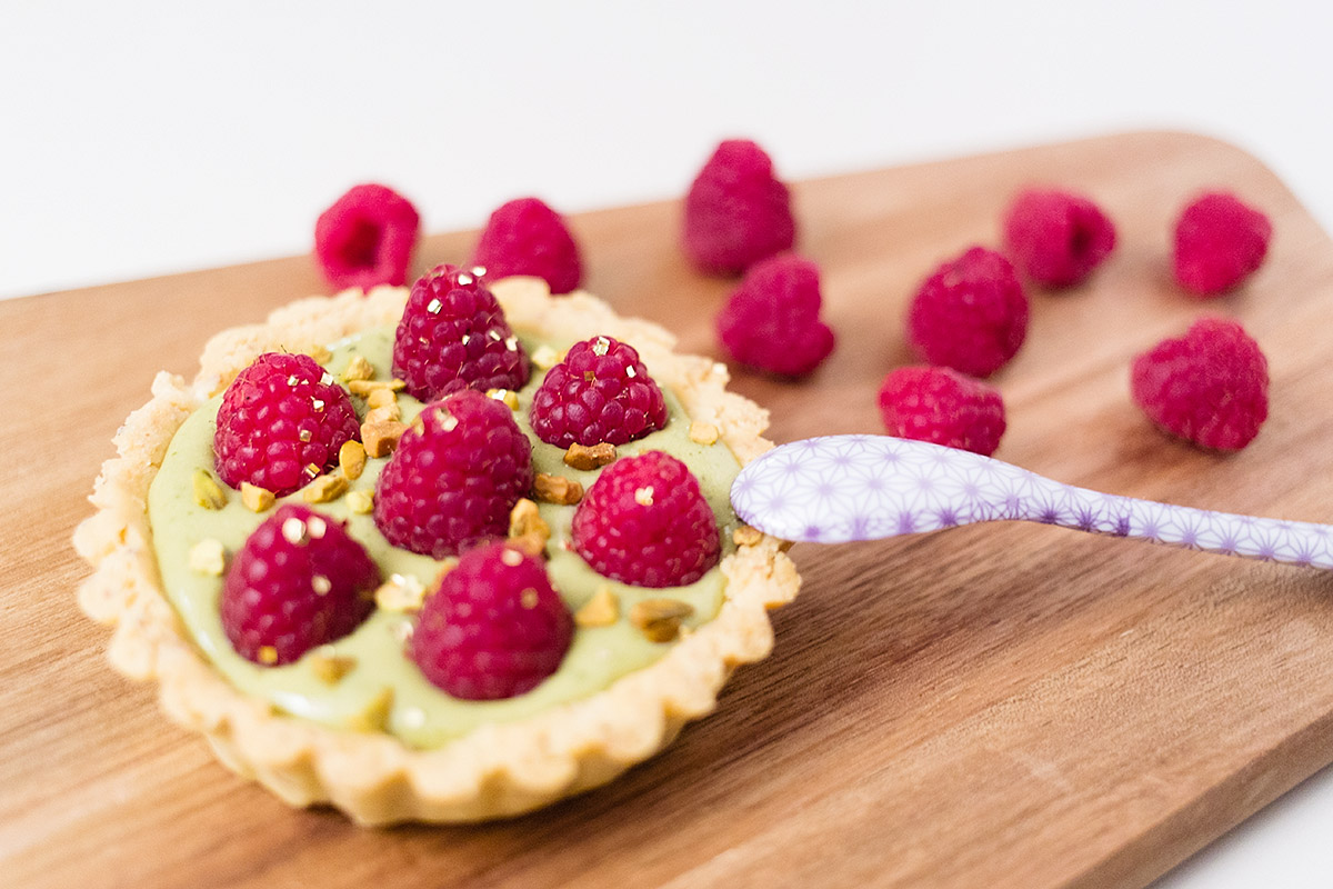 Tartelette framboises et Matcha sans glutenTartelette framboises et Matcha sans gluten