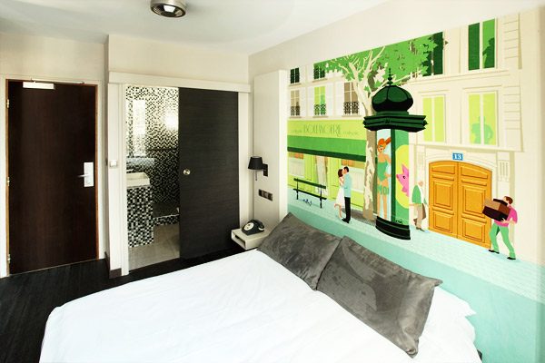 La particularité du lieu tient au fait que chaque étage est différent et personnalisé par un artiste. 7 chambres sur 3 étages sont aujourd’hui terminées.