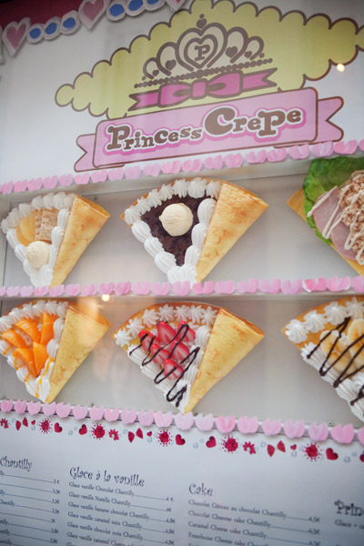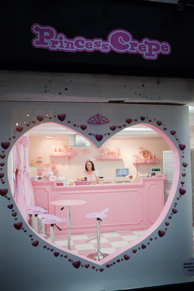 Alors que je cherchais des idées d’adresses où il était possible de manger tout en se sentant « ailleurs », je suis tombée sur cette boutique à l’ambiance très girly, rose comme j’adore et où les vendeuses de crêpes ont un look extra : le Princess Crepe.