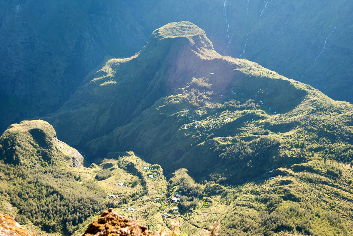 Mafate est le moins touristique des 3 et pour cause : sa difficile accessibilité. 800 habitants vivent sur place à l’année et sont répartis dans quelques 10 îlets, ravitaillés uniquement par hélico, comme expliqués plus tôt, 2 fois par semaine seulement. C’est un choix de vie ! Mafate correspond au cœur (vert) habité du Parc National.