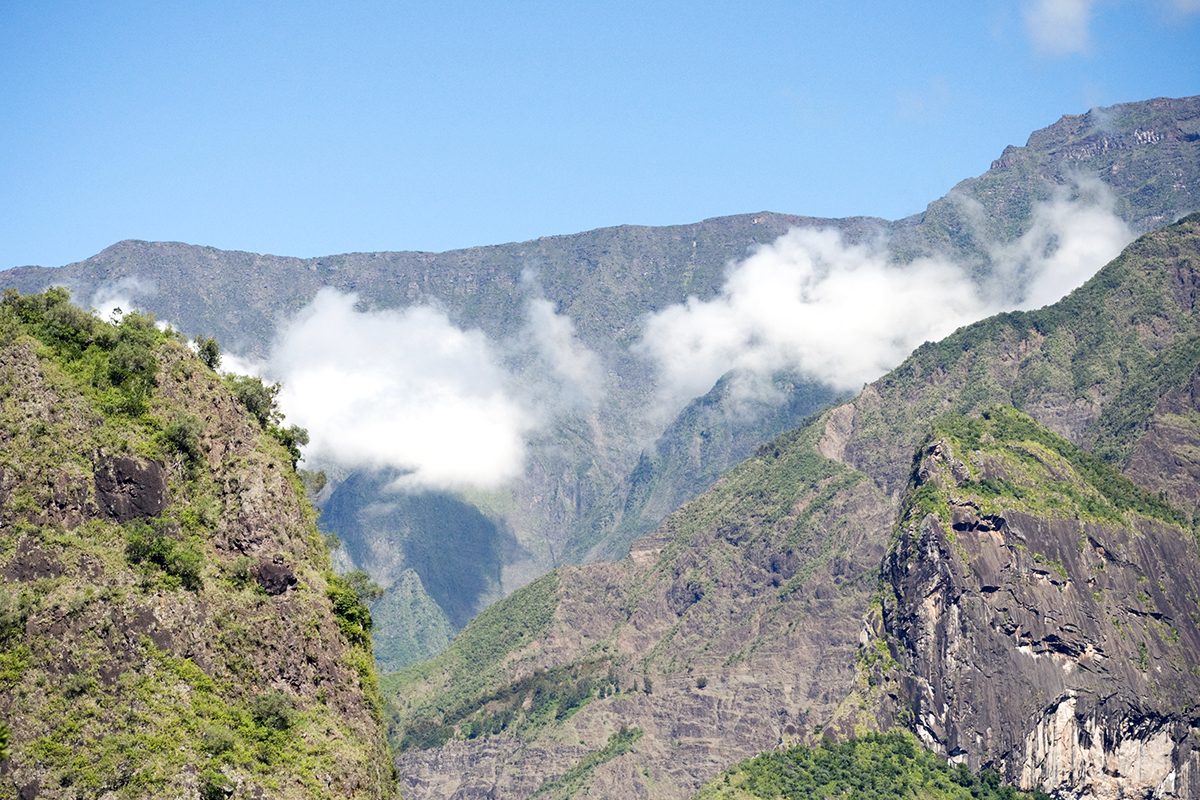 Ce que je retiens de l’île c’est sa formation en cirques – les « trous » causés par le déplacement du volcan (Piton de la Fournaise) vers le Sud de l’île.