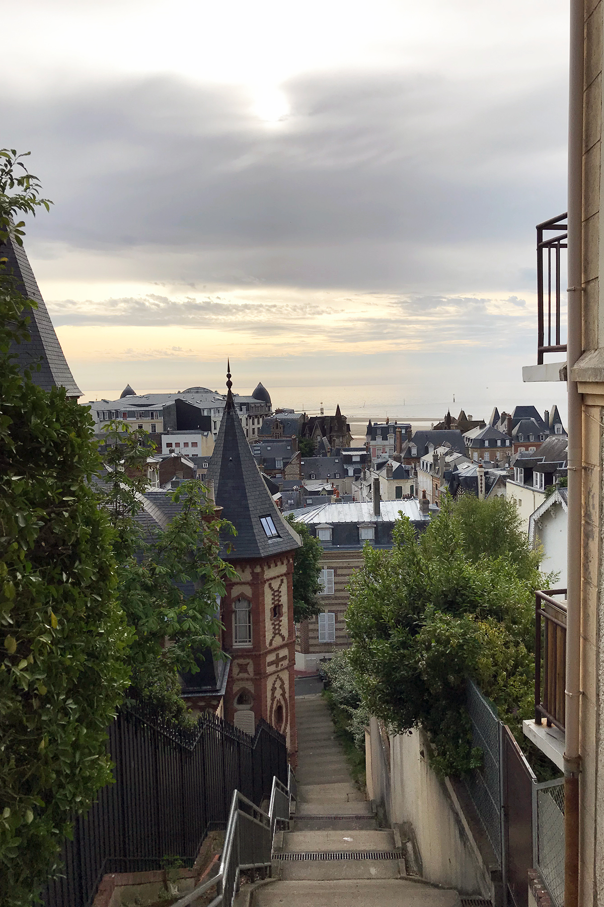 – Depuis les hauteurs de Trouville. Ne pas hésiter à monter une rue, prendre des escaliers et grimper… Pour observer un point de vue sur la mer à travers les petites rues et belles maisons de la ville
