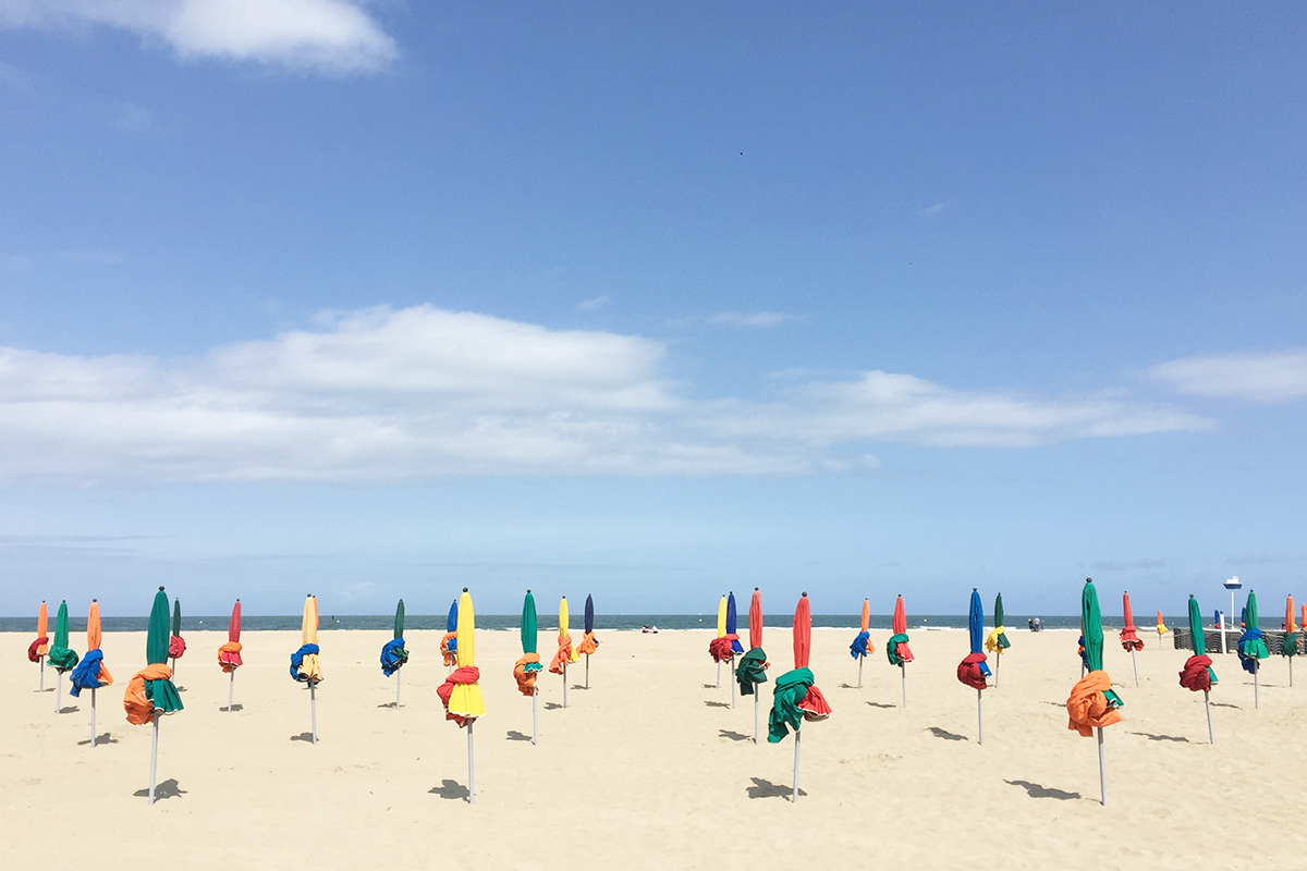 Deauville c’est agréable pour la balade sur ses planches à essayer de trouver un film par acteur, son bar du soleil, la vue de la plage coloriée par les parasols typiques du paysage, pour ses boutiques de déco aussi et ses antiquaires, et puis pour comparer tout simplement en se rendant compte que Trouville, c’est quand même bien mieux 🙂