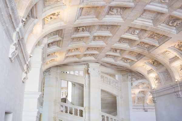 Le projet du château est monumental et a été quelque peu modifié au cours de sa construction et selon les désirs changeant de François Ier. Cependant, l’escalier à double révolution ou encore appelé « à vis » a été ajouté à l’aile royale à partir de 1545. François 1er suit de très près l’avancée du chantier durant son règne mais n’y résidera que quelques jours avant de décéder en 1547.