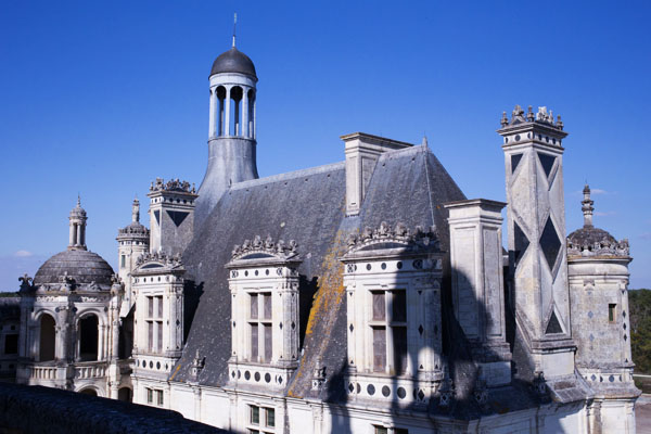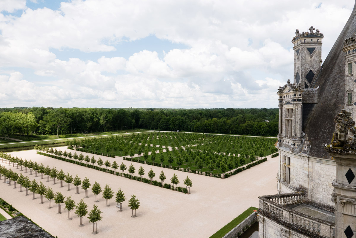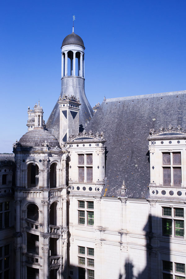 Au fur et à mesure des étages gravis grâce à l’escalier double révolution, nous voici sur les toits de Chambord, pour observer le parc et l’architecture majestueuse du lieu :