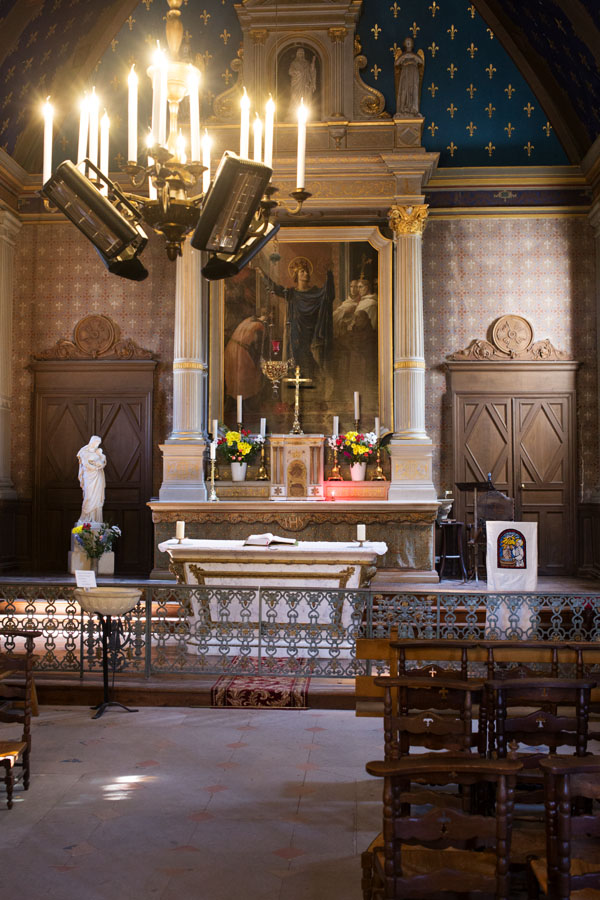 Quelque peu détachée du Château se trouve la Chapelle – très joliment décorée :