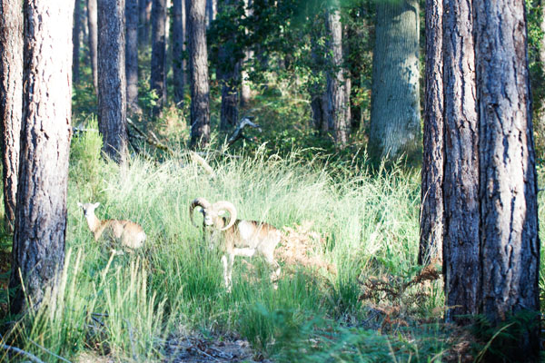 Puis en laissant le Château (en travaux jusqu’au Printemps 2017), nous sommes partis visiter le domaine privé à la recherche de la faune locale. Cette forêt a plus de 200 ans, elle est non-spontanée puisque l’Homme a apporté les pins par exemple. Cette forêt constitue alors une importante réserve de chasse (battues organisées 4 fois par an pour réguler la faune) et de faune sauvage pour participer à la biodiversité végétale et animale. Deux principaux piliers à ce domaine : travailler sur la quiétude du site et jouer sur la diversité pour maintenir un maximum de paysages variés. Il est difficile de compter ses habitants, mais on dénombre quelques 200 chevreuils, entre 800 et 2000 sangliers et de 600 à 800 cerfs et biches (selon les saisons). Chaque année, une parcelle est fermée aux animaux pour permettre la régénération naturelle. J’ai eu la chance d’apercevoir des cerfs, des biches et surtout mes préférés, les petits faons. Beaucoup de sangliers aussi et une paire de mouflons ! Pour ce qui est de les prendre en photo, c’est plus compliqué… ci-dessous quelques clichés (pris de trop loin malheureusement) mais la visite en 4X4 est très intéressante !