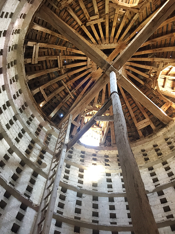 Très rare et que j’ai découvert à Villesavin – le colombier à échelle tournante toujours fonctionnelle et aux 1 500 cages à pigeons. Avoir un colombier à cette époque évoquait la hiérarchie sociale. Le nombre de cages ensuite et la façon dont elles étaient disposées donnait les différents niveaux de pouvoir qui allaient de la sanction simple à la peine de mort en passant par le pouvoir d’emprisonner.