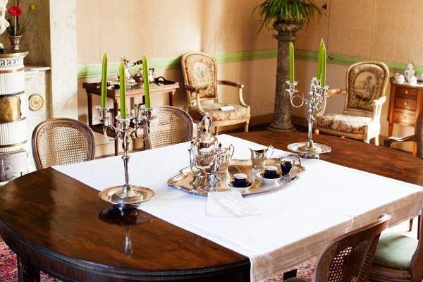 La visite intérieure du château démarre avec l’aile de service et sa cuisine / pâtisserie. Juste au-dessus se trouvaient les chambres du personnel et la lingerie et dans le corps central, les appartements luxueux.