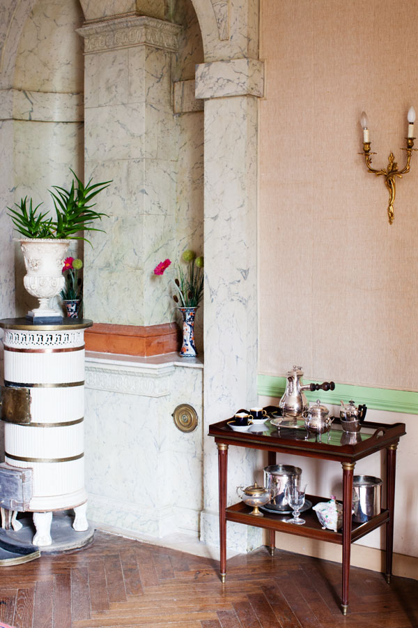 La cour intérieur du château encercle un tilleul centenaire et des orangers et citronniers pas plus jeunes donnent une bonne odeur au lieu, où j’aimerais prendre le thé paisiblement…